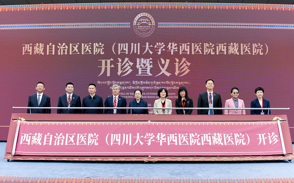在西藏自治区成立60周年之际,2025年6月20日上午,西藏自治区医院(四川大学华西医院西藏医院)举办开诊暨义诊活动,西藏自治区人民政府副主席罗梅,四川大学副校长叶玲,四川大学华西临床医学院院长、华西医院院长罗凤鸣出席并致辞。西藏自治区有关部门,拉萨市及堆龙德庆区人民政府,华西医院、华西二院、华西口腔医院、华西四院、华西医院所属分院负责同志和专家出席。活动由自治区卫生健康委党组书记谭相东主持。